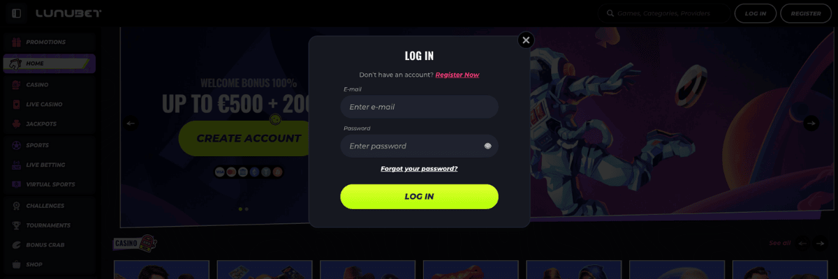 Lapa izmanto atsevišķus spoguļdomēnus, tāpēc dažkārt maršrutē uz citu URL, taču struktūra paliek identiska. Pirmā pieredze – draudzīga, viegli atrast jaunumu sadaļu un akcijas. LunuBet kazino nav pārslogots ar baneriem, un bonusi ir “pa rokai”. Tiem, kas nevēlas likmes, tūlīt pieejami demo režīmi daudzām spēlēm.