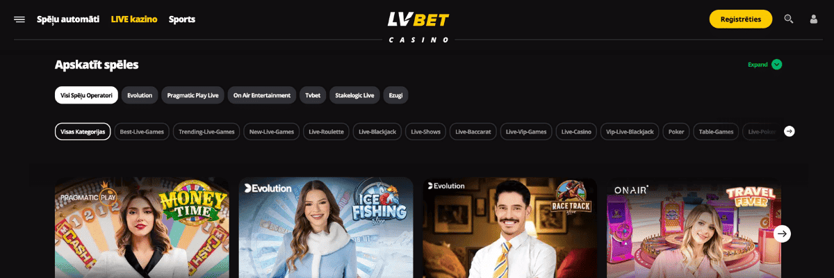 LVBet Live kazino šovi ir pieejami ar Evolution un citu studiju hitiem. Šeit atradīsi, piemēram, Crazy Time, Funky Time, Dream Catcher, Deal or No Deal un Monopoly Live. Spēles straumē profesionāli dīleri, ir ātras likmes, reizinātāji un bonusa raundi, kas rada TV-šovam līdzīgu dinamiku.