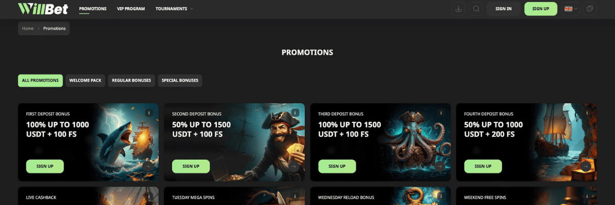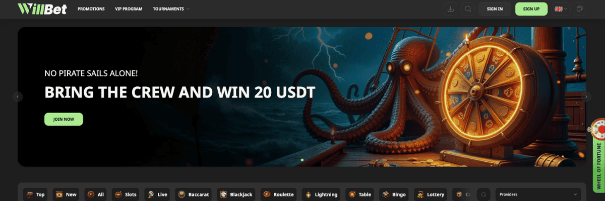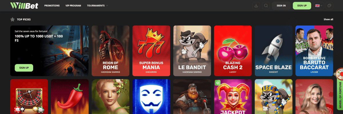 WillBet ir uz kriptovalūtām tendēts online kazino, kuram ir liela spēļu izvēle, interesanti live kazino šovi, kā arī turpat var pievērsties sportam un veikt likmes uz dažādiem pasaules notikumiem. Aptuveni mēnesi testējot šo online kazino pakalpojumu sniedzēju bija jūtams, ka WillBet kazino uzsvars tiek likts uz ātrām naudas izmaksām, vienkāršu navigāciju un regulāriem lojalitātes piedāvājumiem un citām akcijām.