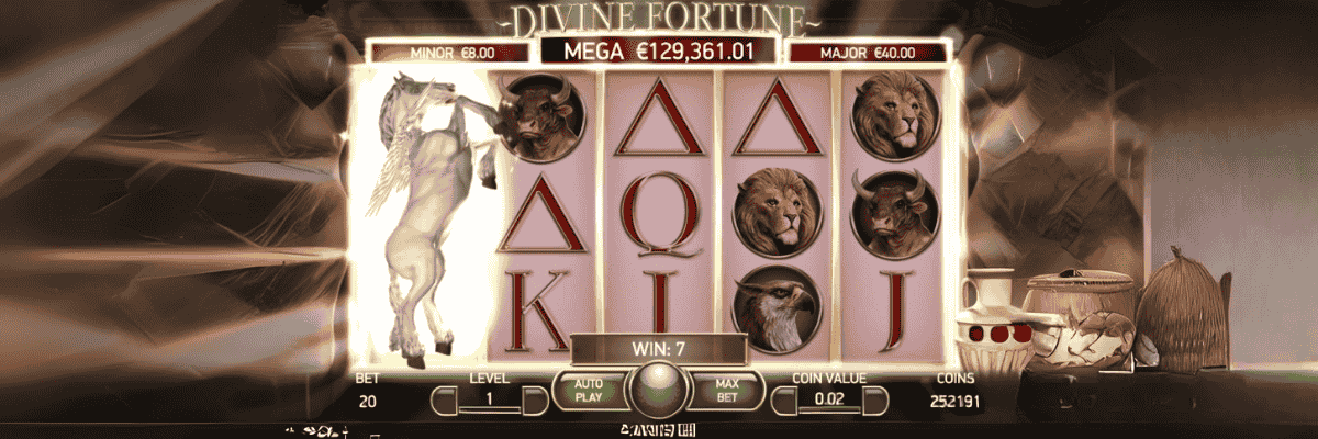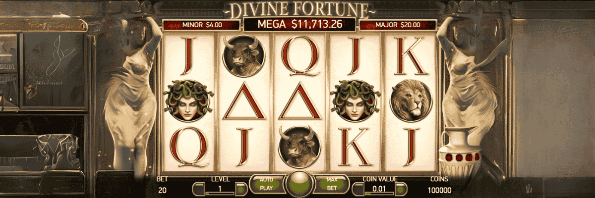 Divine Fortune ir leģendārs NetEnt izstrādāts tiešsaistes spēļu automāts, kas aizved spēlētājus sengrieķu mitoloģijas pasaulē. Tam ir 5 ruļļi, 3 rindas un 20 fiksētas izmaksu līnijas, kā arī progresīvais džekpots. Spēles RTP ir ap 96,59%, bet volatilitate – vidēja, nodrošinot līdzsvarotu laimestu dinamiku.