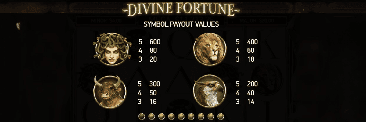 Kopumā Divine Fortune tēma un grafika piedāvā aizraujošu sižetu, kas iegremdē azartspēles piedzīvojumā sengrieķu dievu un mitoloģijas pasaulē.