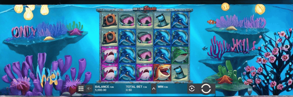 Izmantojiet īpašās funkcijas – Mystery Stacks ar nudge var atklāt simbolus vai zelta haizivi ar Razor Reveal monētām. Bezmaksas griezienu laikā globālais reizinātājs aug ar katru nobīdi, atverot ceļu uz veiksmīgiem trāpījumiem.