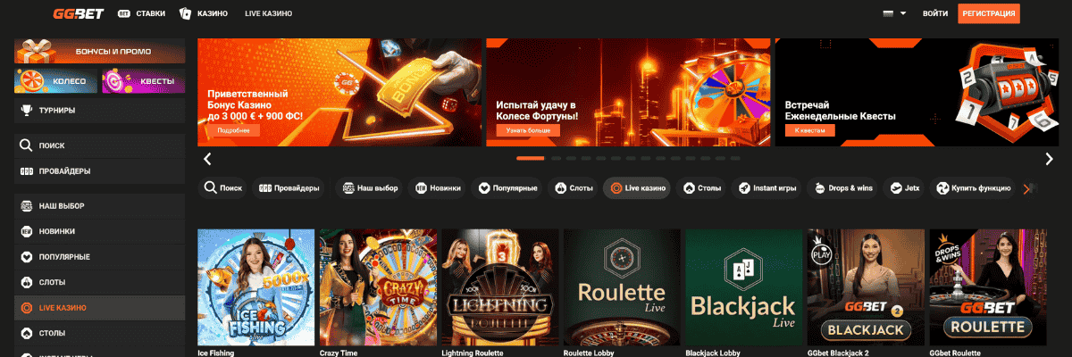 Главное преимущество лайв казино GGBet заключается в том, что платформа сотрудничает только с топовыми провайдерами – Pragmatic Play Live, Playtech и другими. Их игры славятся стабильным HD-стримингом, современными студиями и интерактивными функциями вроде чата с дилером. Такой уровень качества делает раздел одним из самых востребованных на сайте. В числе фаворитов игроков – GGbet Roulette, Mega Roulette, VIP Blackjack 7 и Blackjack 26 – Azure.