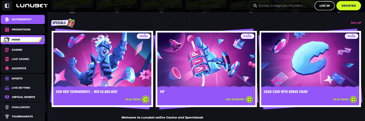 Lunubet – это удобная площадка, на которой игроки могут сыграть в более чем 9000 игр, поучаствовать в турнирах или заработать очки в еженедельных челленджах. Помимо онлайн казино, есть раздел с 30+ видами спортивных ставок в предматчевом и live-режимах. Лицензия Анжуана позволяет игрокам вность депозиты, делать ставки и получать бонусы. Сайт доступен на более чем 20 языках, но для русскоязычных пользователей отдельный русский интерфейс пока не предусмотрен – оптимальным остаётся английский вариант. В следующих разделах читайте информацию о бонусах казино, играх, платежных способах, мобильном приложении и службе поддержки.