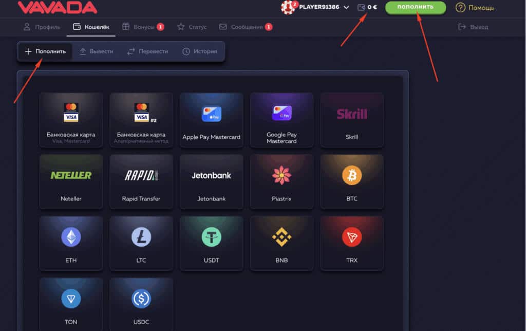 Платформа поддерживает разнообразные способы оплаты включая банковские карты, электронные кошельки и криптовалюты для удобства всех игроков. Vavada обеспечивает быстрые выплаты и мгновенные депозиты через большинство платежных систем. Минимальные депозиты варьируются в зависимости от выбранного метода – от €1 для некоторых электронных кошельков до €63 для Ethereum.