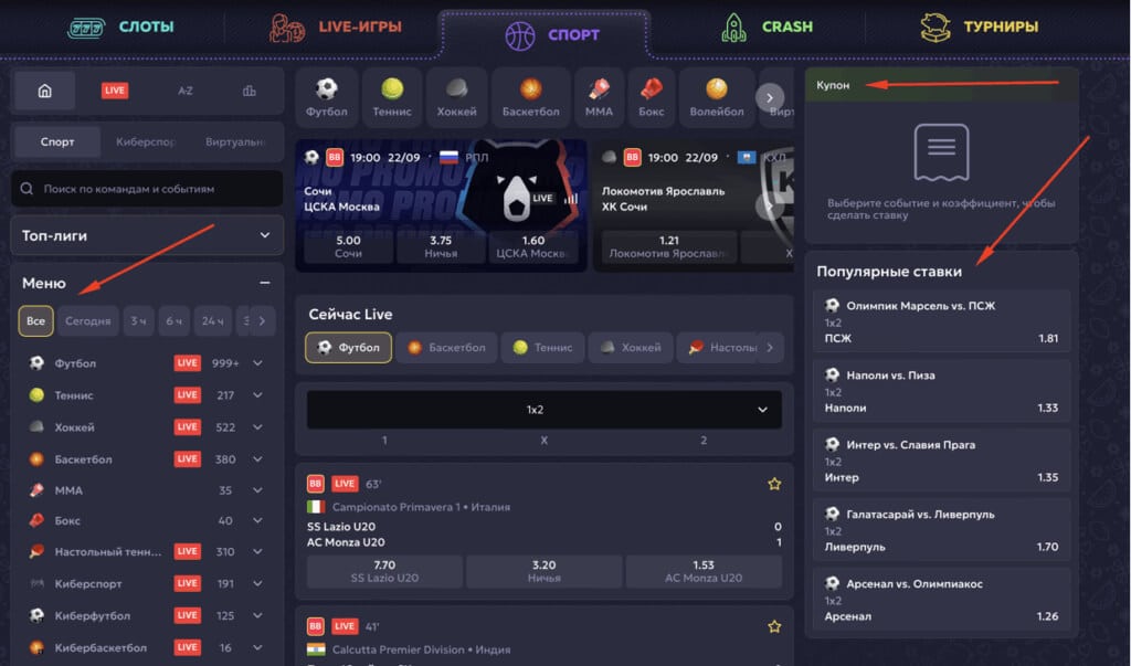 В спортивном разделе Vavada представлено более 30 дисциплин и свыше 1000 событий ежедневно. Букмекер покрывает популярные виды спорта – футбол, хоккей, баскетбол, теннис, бокс, MMA – а также киберспорт с матчами по CS:GO, Dota 2 и League of Legends. Игроки могут делать ставки как на топовые турниры вроде АПЛ, Лиги чемпионов УЕФА и НБА, так и на локальные чемпионаты.