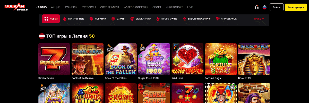 Vulkan Spiele – это это онлайн казино, где собрано все для гемблеров: более 7000 игр, ставки на спорт и киберспорт. Площадка привлекает пользователей из Латвии благодаря огромному выбору развлечений, локализованному интерфейсу для русскоязычных игроков и регулярным акциям. Дополнительные функции, такие как миссии, лутбоксы и колесо Фортуны нравятся игрокам и отличают это казино от конкурентов.